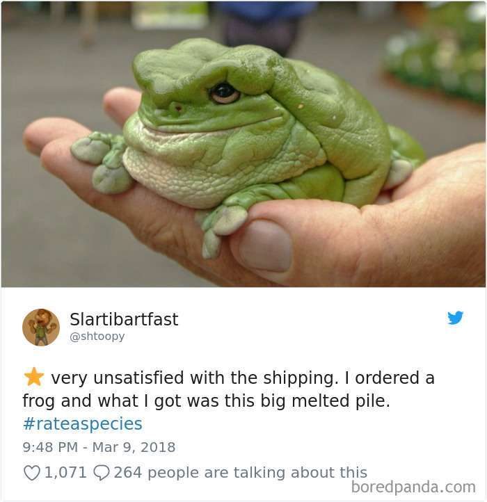 對這次的運輸公司很不滿意,我訂了一隻青蛙,卻得到一隻融化了的生物。