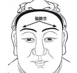 在面相中,福德宮位於眉上方偏外部位,即在眉角之上的部位,也就是天蒼、地庫、福堂之處。這個部位掌管人的財運和福氣,假設此處有疤痕,能夠說是一個無福的人,勞碌命,容易身心不寧,易有神經病症。
