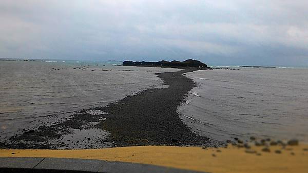 快要浮現的道路 不過可以看到很多人以不守規矩的到下面去要去踏浪了