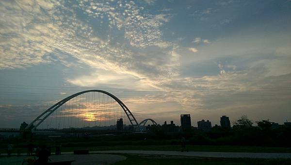 到大稻埕 的時候剛好看夕陽 很多人在拍這美麗的夕陽