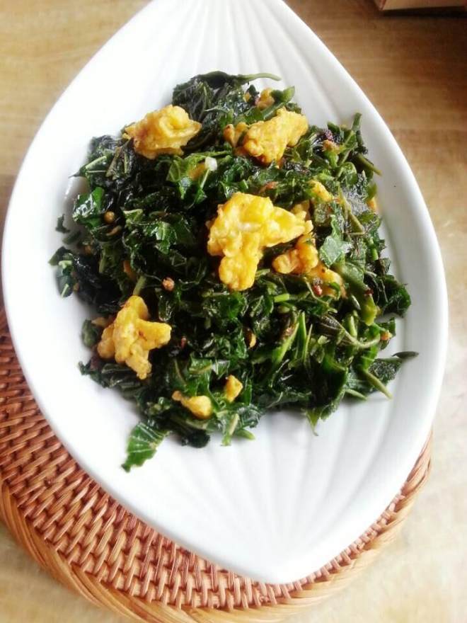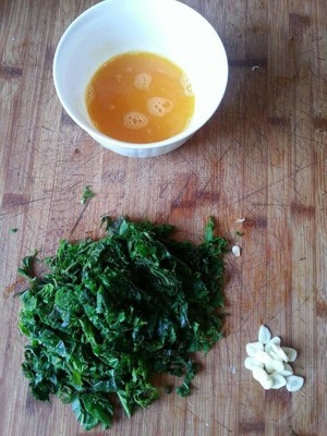 雞蛋加入適量黃酒,鹽打散備用大蒜切片備用桑葉放入滾水中汆燙擠干後,切碎備用(這樣吃起來口感更好)