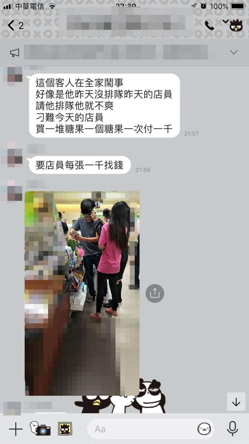 這位奧客為了刁難店員,甚至請友人再去領5萬元兌換1000元的現鈔,旁邊客人想先結帳,他則反嗆:「因為那天店員叫我要排隊,所以不好意思,其他客人麻煩也排隊!我今天就是有那麼多東西要結帳,他就是要給我1個糖果打1張發票!沒有的話我就打1999投訴!」