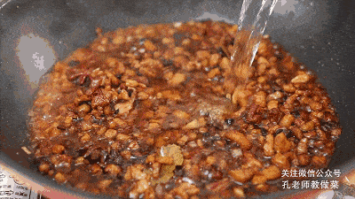 調入生抽、老抽,鹽,翻炒均勻。