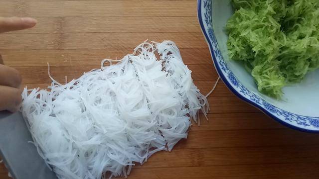 蘿蔔去皮擦細絲,放入少量鹽,淹出水分,攥干備用