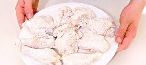 裹好麵粉的雞翅需要過一遍水後再裹第二層,這樣做出的雞翅才能更酥脆,悄悄的告訴大家,據說KFC也是這樣做的喲。