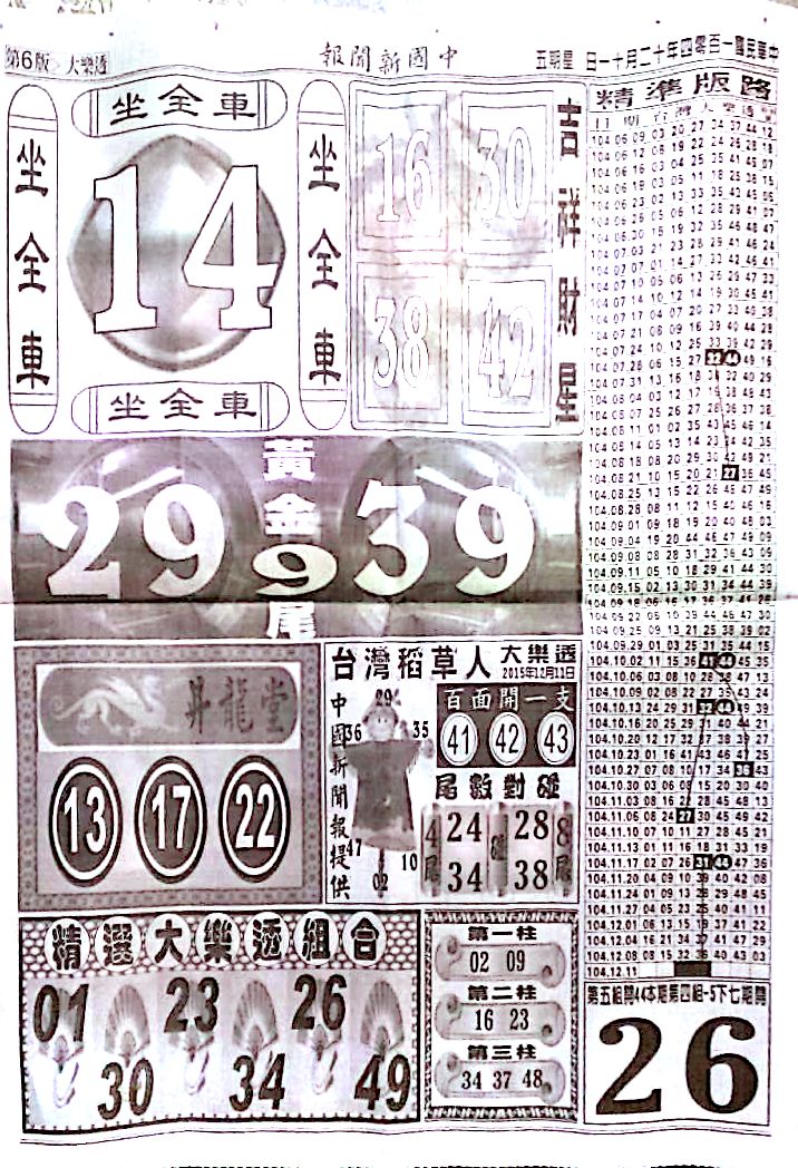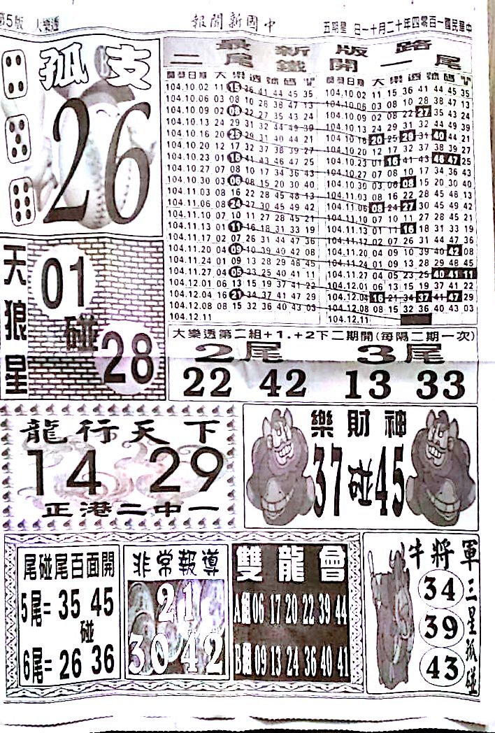 今彩539 2020/10/10 吉祥報分享 供您參考