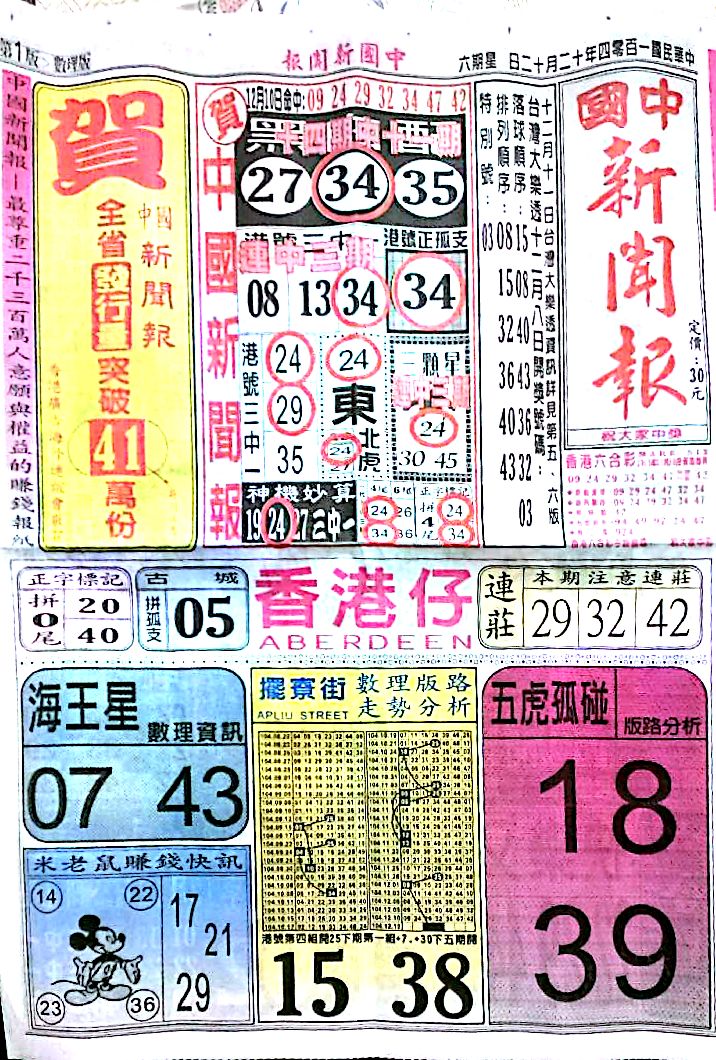 今彩539 2020/10/07 台北鐵報分享 供您參考