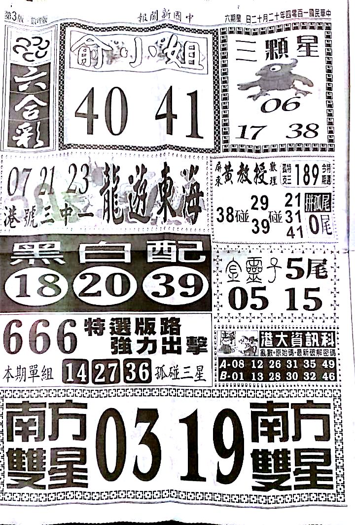 今彩539 2020/10/06 吉祥報分享 供您參考