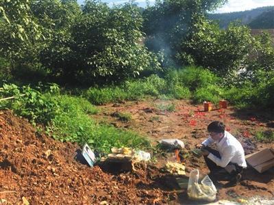 8月9日,判決無罪後,廖海軍第一時間到父母墳前祭拜。