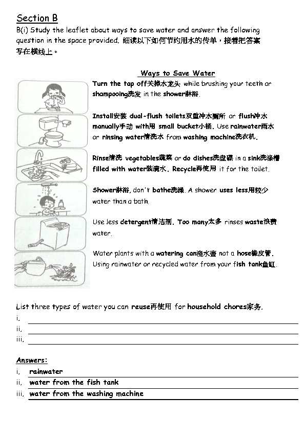 這個項目有 B(i) 和 B(ii). B(i) 需理解短文後,簡短回答問題。B(ii) 則需根據要求寫一封信,電郵或便條等,字數介於50-80個字之間。B(i) 3分而 B(ii) 12分,建議用30分鐘完成作答。