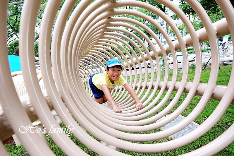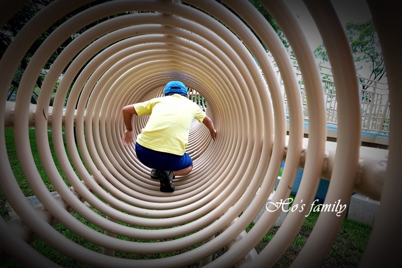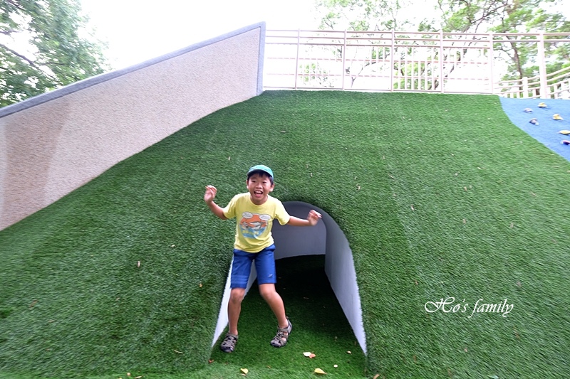 不只滑草、爬網,林口公鄰23公園山丘磨石溜滑梯有許多設施,轉到另一頭Yo又發現神秘的角落,這孩子就這樣在山洞間鑽來鑽去嚇媽媽,我有一種想拿鐵鎚打地鼠的fu…