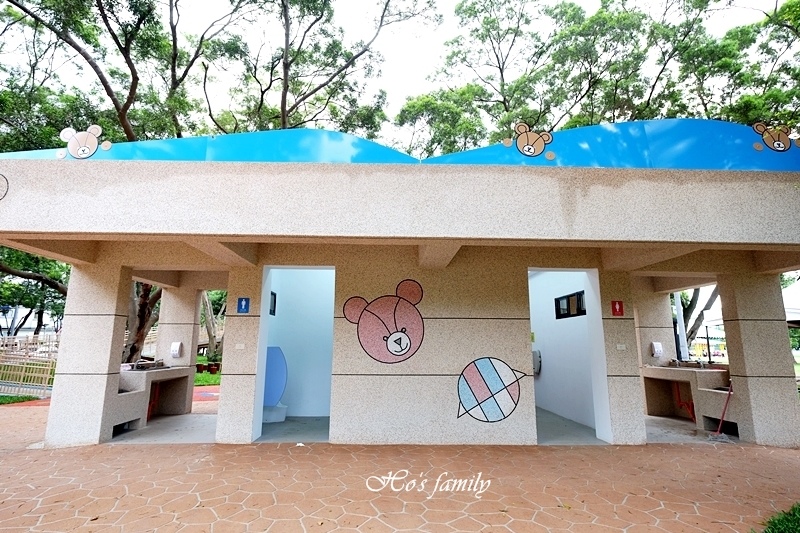 這裡也設有洗手間,不但有高低洗手台,廁所裡面也有全新北特色公園第一座照護床,讓身障孩子可以躺著換尿布。