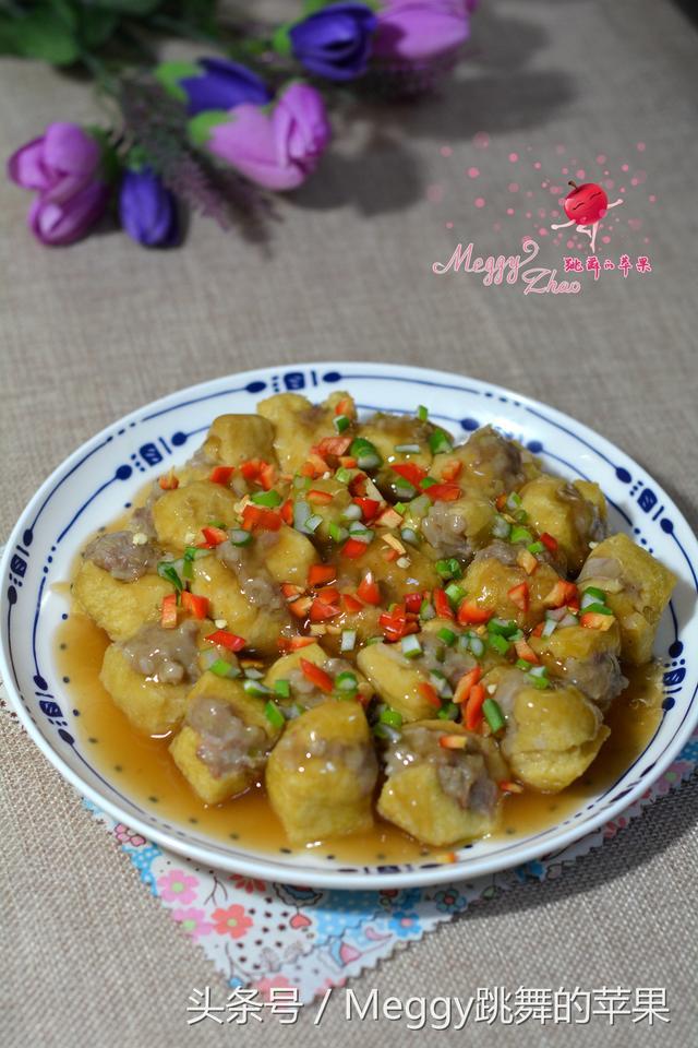 我把和好的肉餡塞進豆泡裡,做了一鍋釀豆泡。