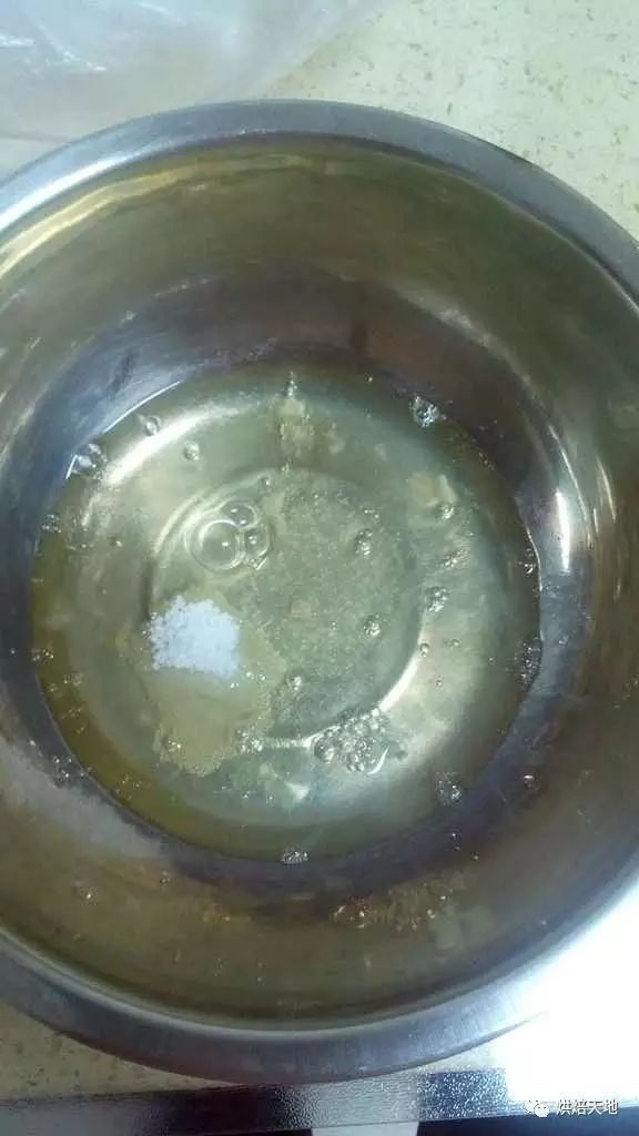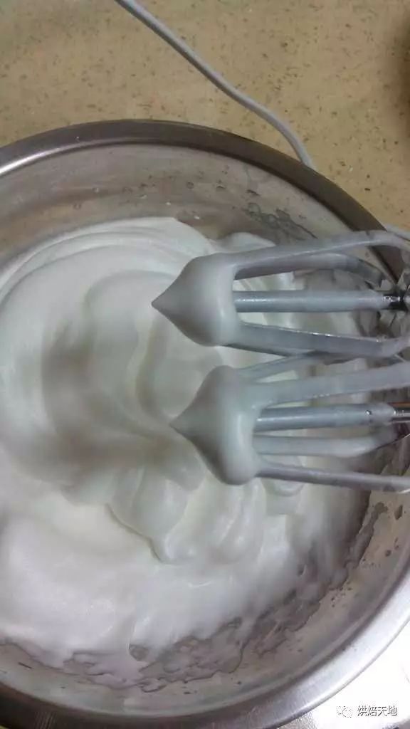 1. 蛋清打入無水無油的盆中,加入少許的白醋和10g的白砂糖。