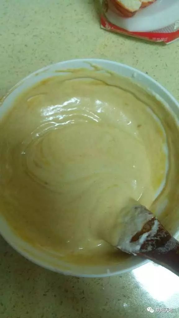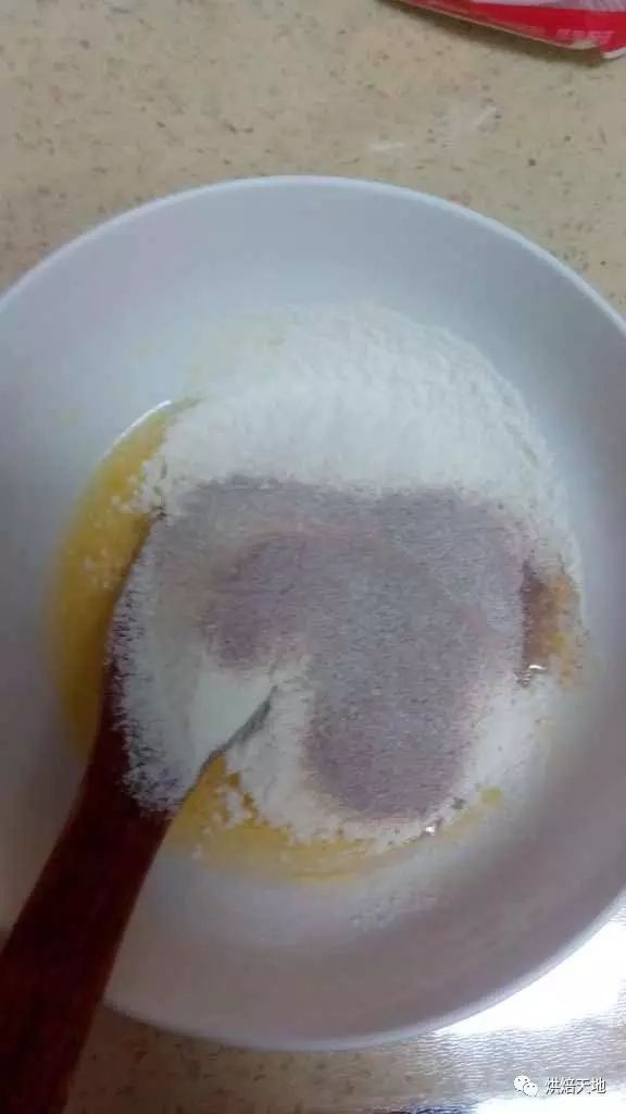 3. 蛋黃打入碗中,放入少許的玉米油、香草精和清水攪拌均勻。