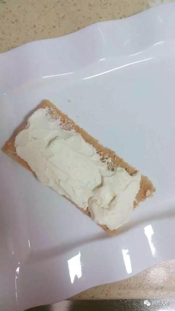 18. 拿一塊兒蛋糕片,抹上奶油,重複所有的蛋糕片。