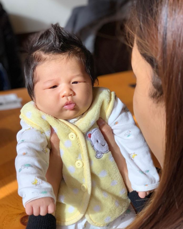 鐘嘉欣曬兒子近照!只有2個月大竟然會擺出這種表情!網友:太可愛了!