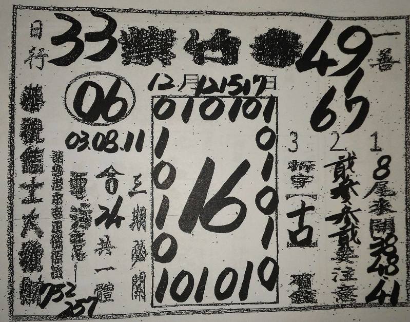 今彩539 2020/10/06 Usagi 九宮 精選低機號碼 供您參考
