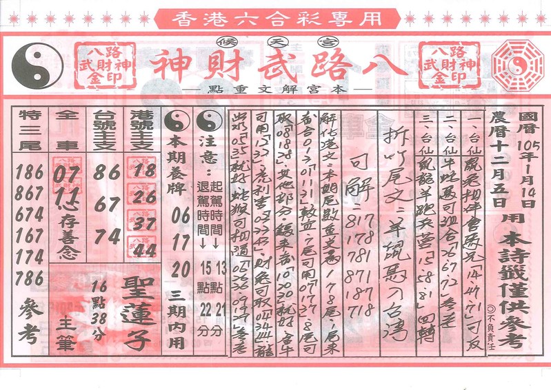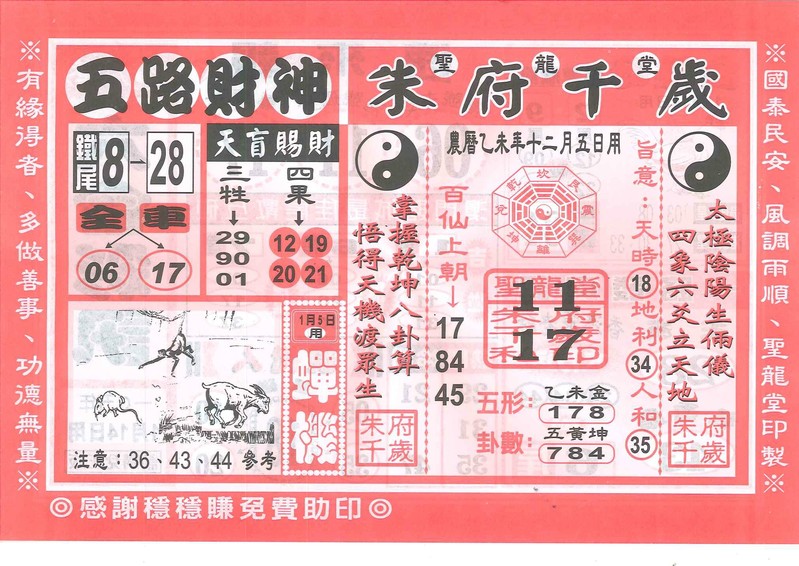 今彩539 2020/10/06 吉祥報分享 供您參考