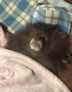 主人還在牠睡覺時,特地幫牠蓋上被子,看牠一副睡眼惺忪的樣子,一定很舒服!