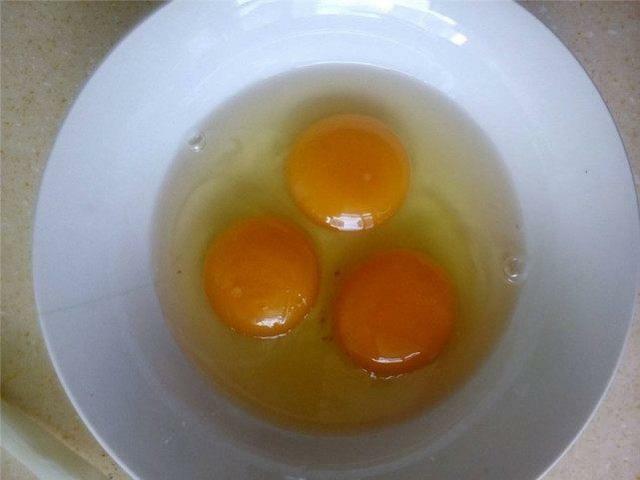 1.將雞蛋打入碗中,充分打散至顏色變淺後;