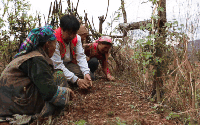 而當地的婦女則從山上挖草藥
