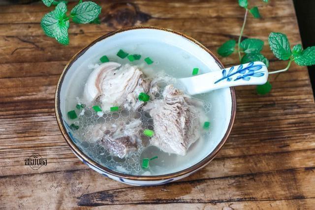 6、開蓋,把大蔥,生薑撈出,調入食鹽調味,撒點蔥花點綴,羊肉湯只要加大蔥一起煲,沒有羊騷味,肉香四溢還不膩,學會給家人露一手吧!