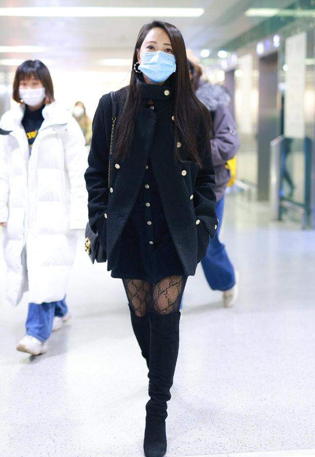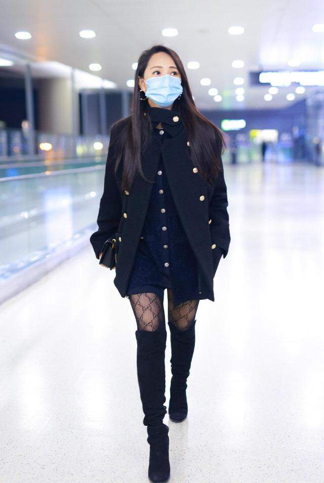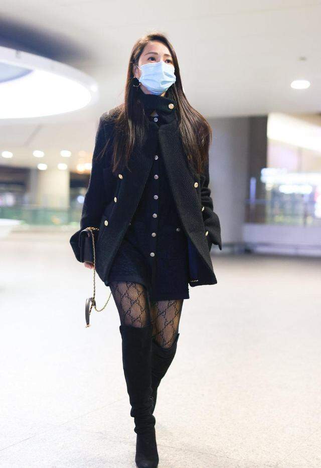 2月1日,現身上海機場的伊能靜,身穿黑色毛呢大衣搭配超短裙,下半身的印花黑絲和過膝長靴更是亮眼,不僅把氣質襯托得無比高貴,還帶有一絲撫媚的小女人味兒。