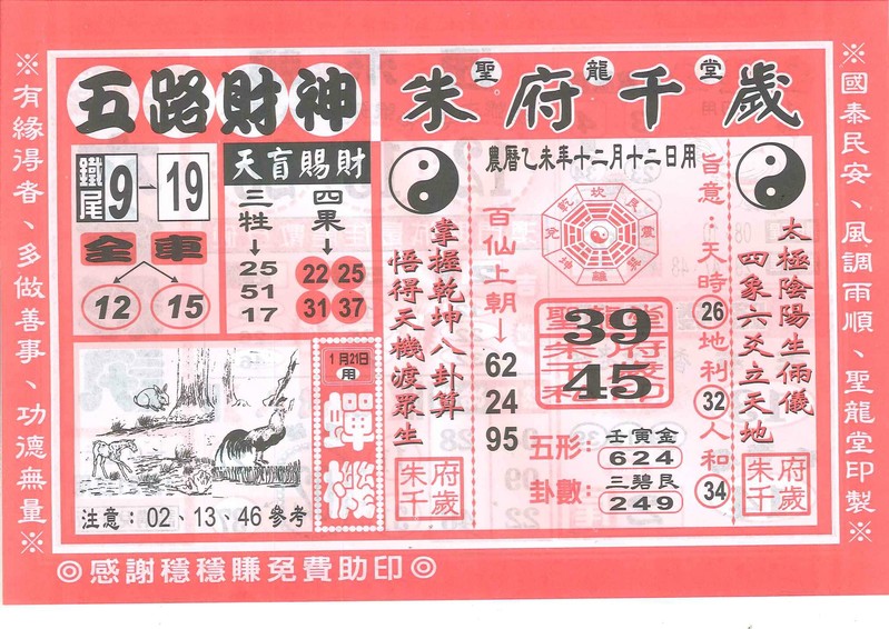 今彩539 2020/10/05 Usagi 九宮 精選低機號碼 供您參考
