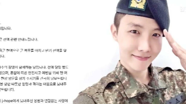 韓聯社TV主播:「j-hope在退伍前夕發表感想,「正在回顧軍隊生活感到很欣慰很堂堂正正。」