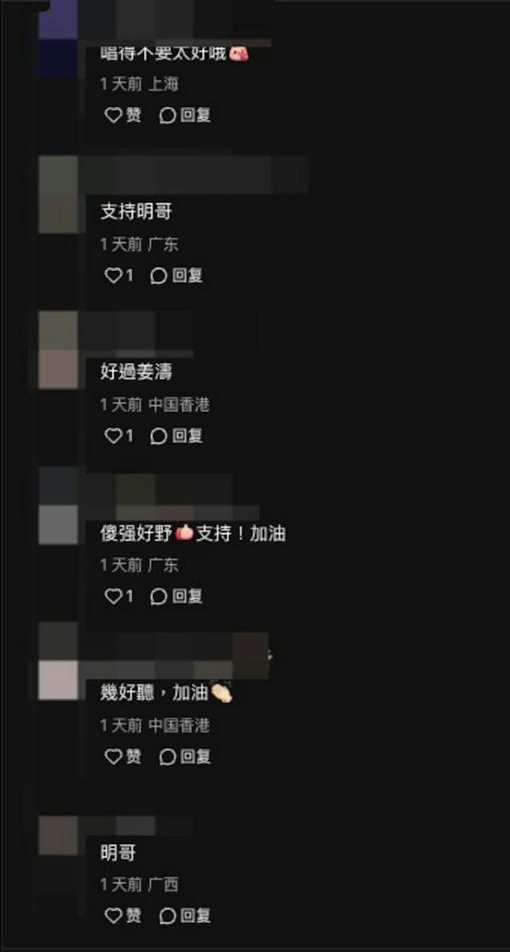 許多網友紛紛留言給予鼓勵,「好聽」、「耀明哥唱歌,誰敢說不好聽?」、「唱功不輸現在的當紅歌星」、「他很厲害了!我副歌完全唱不上」、「可以到抖音做唱播了!真的」、「TVB不要浪費人才」,但也有人建議,不需要模仿黃家駒,應該要唱出自己的風格。