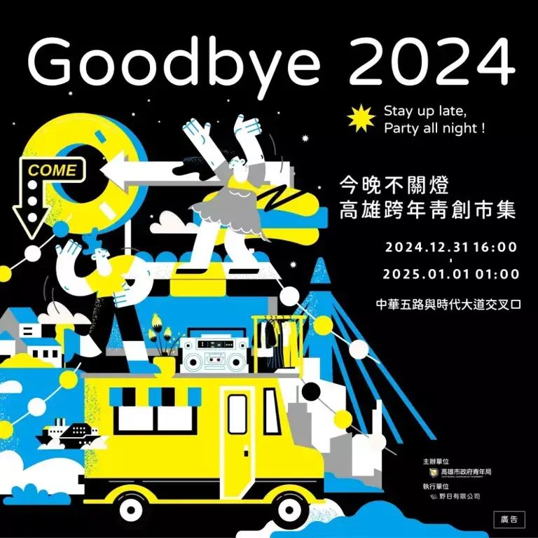 不只節目精彩,活動現場設有傳統及青創市集逾200攤,打造一場好吃又好玩的跨年盛宴。高雄跨年今年首度結合在地青創品牌推出「今晚不關燈・2025高雄跨年青創市集」,有80間特色青創品牌,超過半數出席品牌推出「高雄文化元素」主題限定商品蘊含滿滿高雄風土滋味。青創市集自31日下午4點起至元旦凌晨1點於時代大道及中華五路交叉口登場,期盼以美味讓觀眾留下美好回憶。