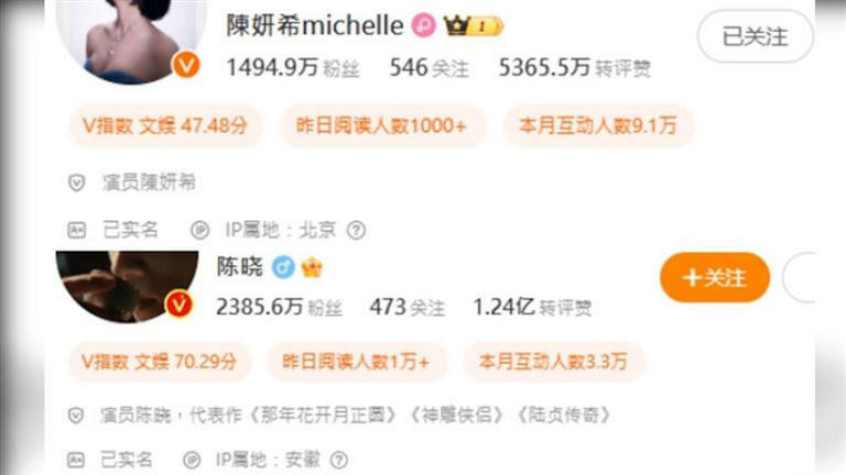 女星陳妍希與中國演員陳曉結婚近9年,去年6月無預警被爆婚變,事後陳妍希證實父親離世,陳曉還被傳沒有參加岳父的葬禮,又以個人名義為西藏地震災區捐款,離婚傳聞更甚囂塵上,近日他們又被發現微博IP屬地顯示在兩個城市,疑沒有一起過年,夫妻倆婚姻再傳亮紅燈。