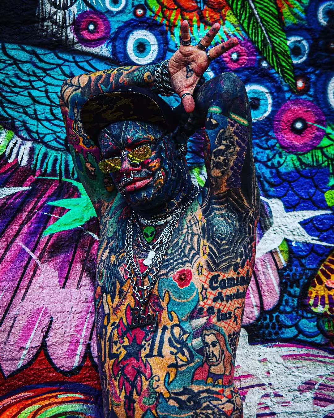 Marcelo表示,15歲刺了第一個圖案後,便一發不可收拾,逐漸愛上身體藝術,如今甚至在手臂植入金屬物、牙齒換成鎳牙,改造層級遠超一般刺青愛好者,笑稱「已經找不到最喜歡的刺青,因為整個身體都是作品。」