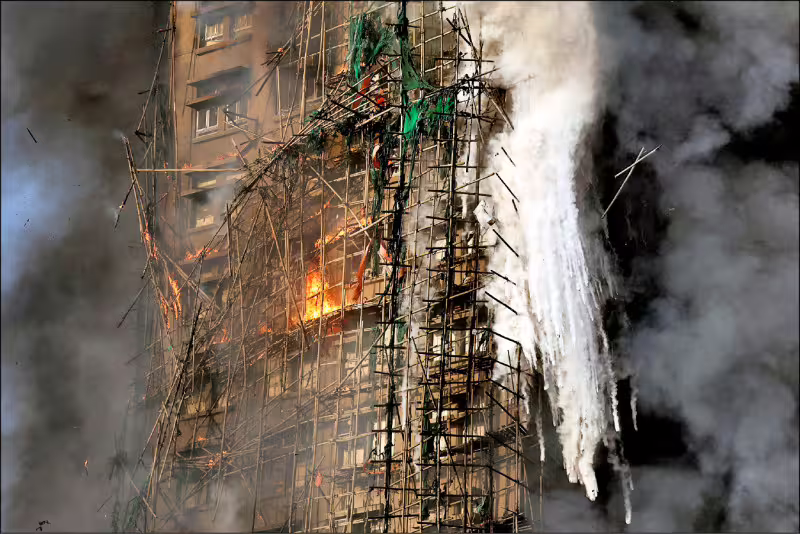 11月26日約下午3點,有民眾目擊其中一棟大樓外圍棚架起火,火焰沿防護網一路往上蔓延,火勢在強風助勢下迅速失控,波及其他大樓,短時間內,7棟大樓同時燃燒,相當駭人。香港網友透露,出事前看到工人在棚架抽煙,且施工區域常存易燃材料,目前尚不確定起火原因,但已引發外界抨擊。