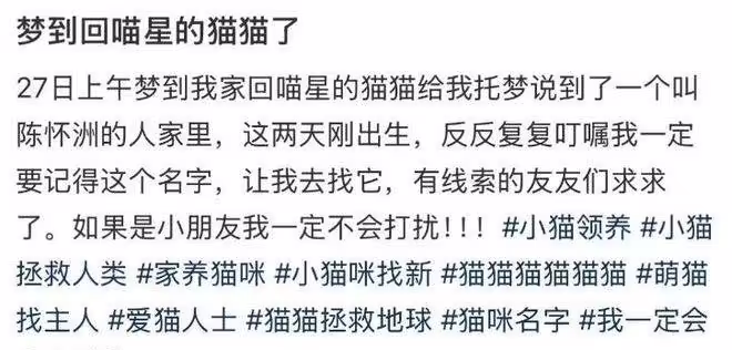 透過網路的力量,好多善心網友幫忙轉傳,沒想到1個月後出現一位名叫「陳懷宙」的網友。陳懷宙表示上個月下班撿到一隻母貓,當晚就生下一隻小貓,算一算時間差不多對上招財託的夢。