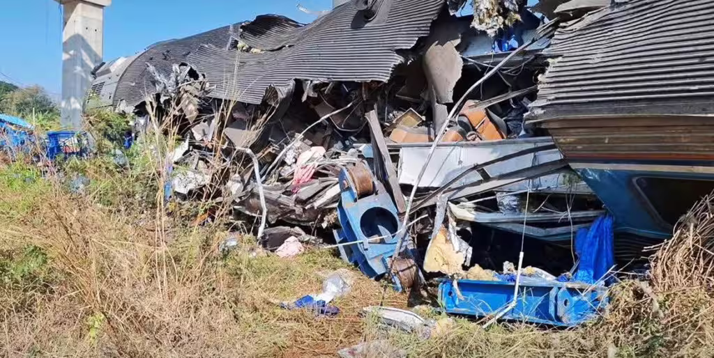 綜合《The Nation》報導,事故發生於距離曼谷東北方約230公里處,當時現場正進行中泰合建的「曼谷—廊開高速鐵路」工程,初步調查顯示,起重機疑因不明原因突然從高架橋上倒塌,先墜落至鐵軌上,隨後遭行進中的第21號列車正面撞擊,引發更多施工材料掉落砸中列車車廂,造成嚴重損毀。