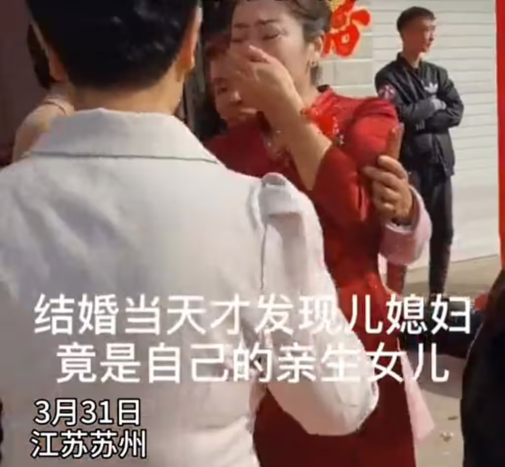 報導指出,婆婆於是當場跟親生女兒相認,兩人都激動到忍不住抱著哭泣。也因此,婚禮突然就變成「情人→兄妹」的狗血情節。不過事情還沒結束,當大家都以為「兄妹不能結婚」時,原來新郎也是養子,所以婚禮仍然順完成,這位長輩同時經歷兒子娶妻跟女兒出嫁。